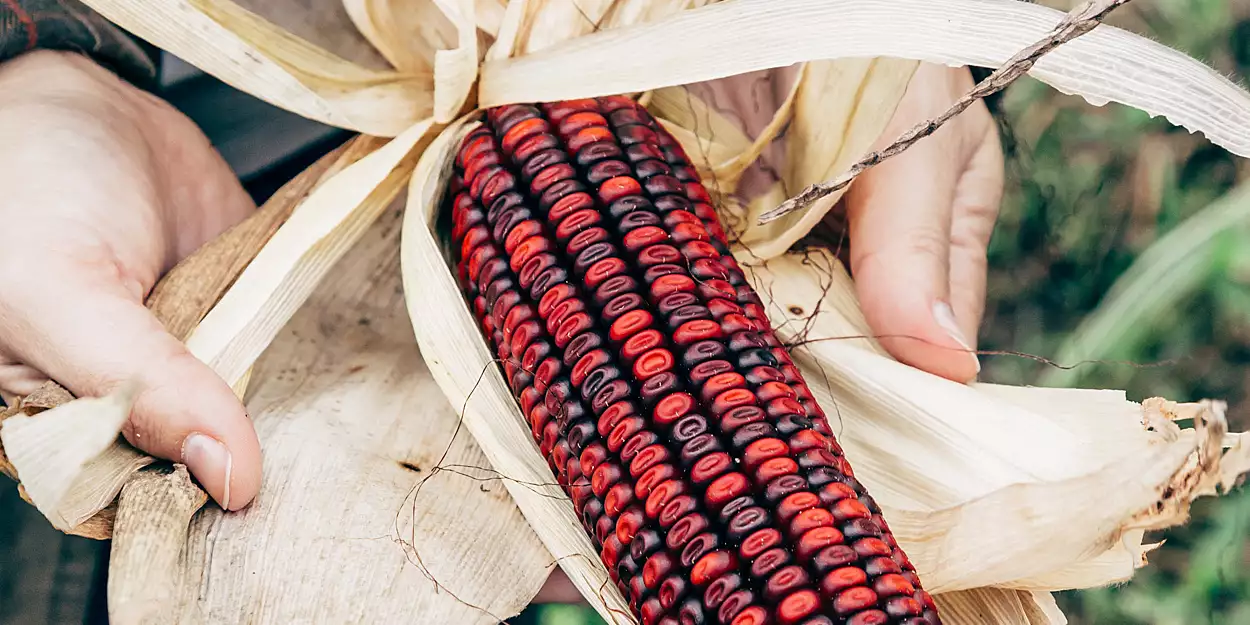 O milho vermelho , tem suas origens nas culturas indígenas das Américas. É um tipo de milho que se destaca por sua cor azul ou roxa única. O cultivo do milho colorido possui raízes históricas e culturais profundas, especialmente entre as tribos nativas americanas no sudoeste dos Estados Unidos, como os Hopi os Cherokee ou os Navajo.